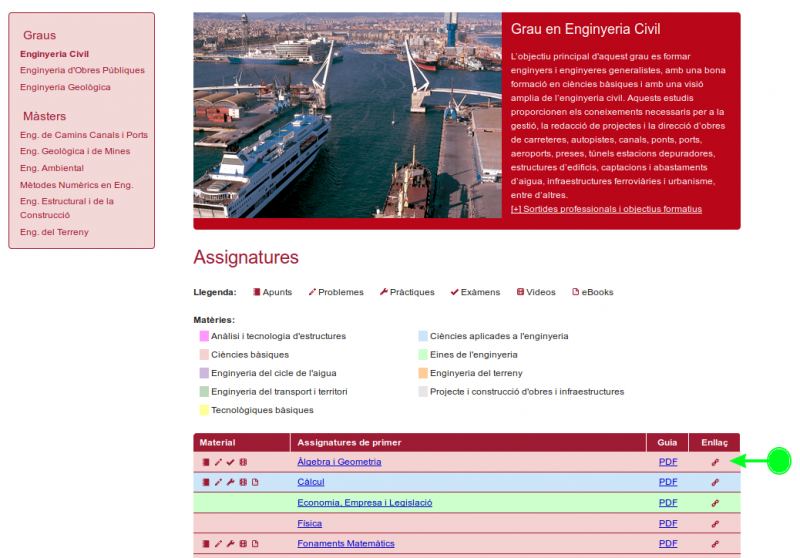 Aquest enllaç es pot obtenir des del Camins OpenCourseWare, dins el llistat d'Assignatures: